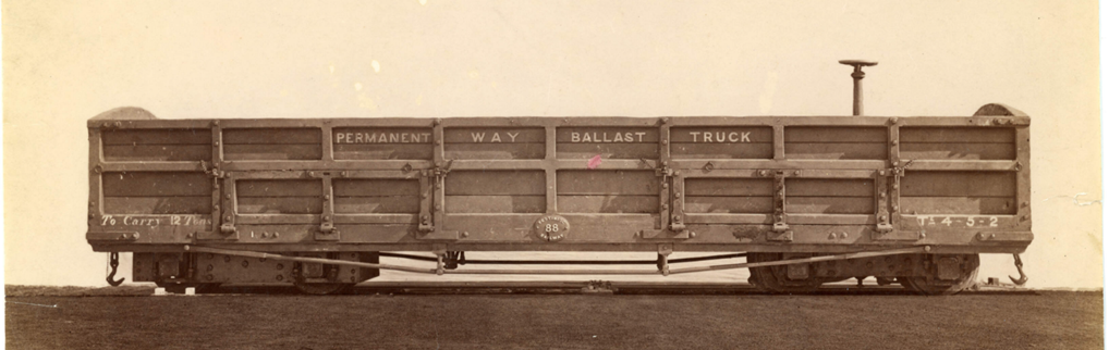 In 1874, Boston Lodge works built two handsome bogie trucks (Nos.88 and 105) described in stock returns as being for “12 tons of ballast, 8 tons of coal or 8 tons of corn in sacks”. As line improvements were being undertaken (with easing of curves and relaying with heavier rail following the successful introduction of double Fairlie locomotives), their primary purpose of “Permanent Way Ballast Truck” was affixed as shown in the photograph of No.88 taken in the late 1870s.