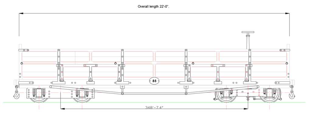 The aim of the project is to fill a gap in the heritage waggon fleet by recreating a vehicle that looks identical to that shown in the photograph above, number 88. We recognise however that beauty is only skin deep, and the finished truck needs to be of practical use! Whilst the replica Truck will recreate an important element of the FR’s permanent way history, it can additionally help highlight the important (and arguably overlooked) role that granite traffic played in the railway’s history. We propose that the Truck – alongside the restoration of 4-wheel granite waggons in the pipeline – can play an important role in helping tell this story. From a build and operational perspective, we propose to incorporate a number of ‘under the skin’ design differences to ease construction, build and maintenance.